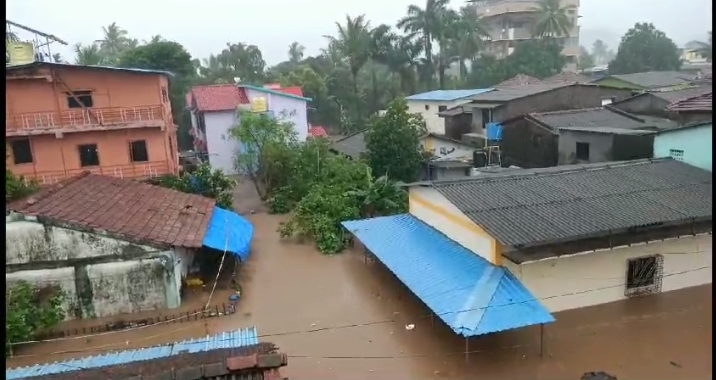 उरण : अतिवृष्टीचा फटका हा ऐतिहासिक प्रसिद्ध चिरनेर गावाला बसला असून गावातील सुमारे ३५० च्या वर घरात पुराचे पाणी शिरण्याची घटना मंगळवारी रात्रीच्या सुमारास घडली आहे.रात्रीच्या सुमारास ओढवलेल्या अस्मानी संकटामुळे गावात एकच हाहाकार माजला आहे.अनेक रहिवाशांच्या जीवनावश्यक वस्तू, इलेक्ट्रॉनिक वस्तू,फँनिचर ही पाण्याखाली गेल्याचे भयानक चित्र समोर येत असताना रहिवाशी हे आप आपल्या कुटुंबासह शेजारी मंडळींचे जीव वाचविण्यासाठी रात्रीच्या अंधारा