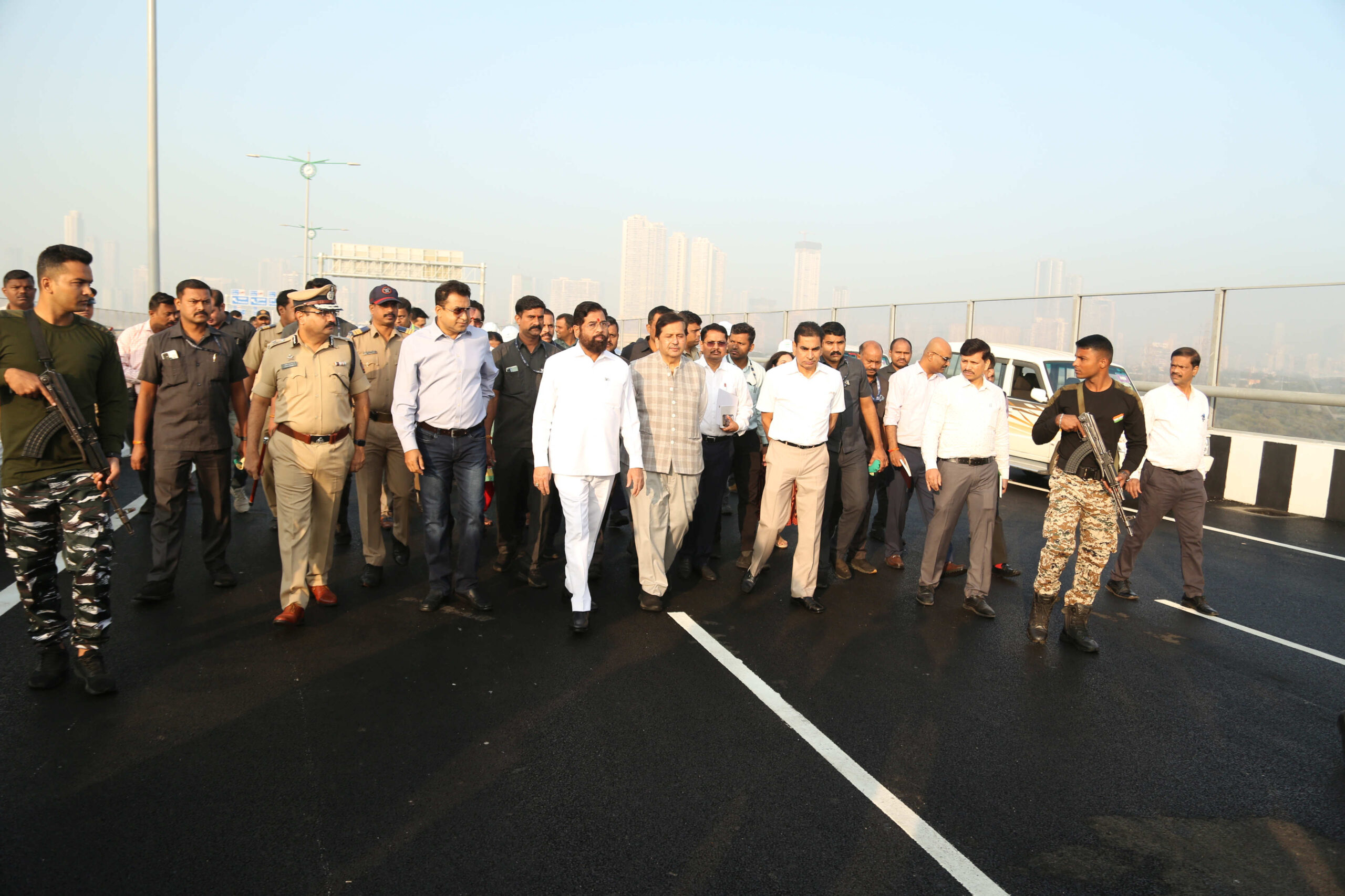 मुंबई ट्रान्स हार्बर लिंकचा (एमटीएचएल) ‘अटल बिहारी वाजपेयी शिवडी-न्हावा शेवा अटल सेतू’ (मुंबई पारबंदर प्रकल्प) चे १२ जानेवारी रोजी प्रधानमंत्री नरेंद्र मोदी यांच्या हस्ते लोकार्पण होत असून त्या पार्श्वभूमीवर मुख्यमंत्री श्री. शिंदे यांनी आज या अटल सेतूची ठिकठिकाणी थांबून पाहणी करून आढावा घेतला. यावेळी कौशल्य विकास उद्योजगता व नाविन्यता मंत्री तथा मुंबई उपनगरचे पालकमंत्री मंगल प्रभात लोढा, आमदार प्रशांत ठाकूर, आमदार महेश बालदी, मुंबई मनपाचे आयुक्त तथा प्रशासक आय.एस. चहल, मुंबई महानगर प्रदेश विकास प्राधिकरणाचे आयुक्त (एमएमआरडीए) डॉ. संजय मुखर्जी, अतिरिक्त आयुक्त डॉ. सुधाकर शिंदे, डॉ. अश्विनी जोशी, रायगडचे जिल्हाधिकारी योगेश म्हसे, नवी मुंबई मनपाचे आयुक्त तथा प्रशासक राजेश नार्वेकर आदींसह वरिष्ठ अधिकारी उपस्थित होते.