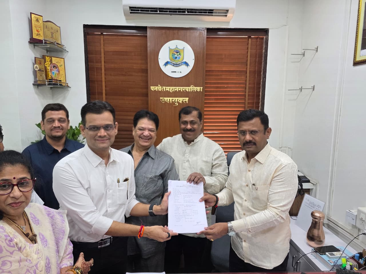 नुकताच झालेल्या पनवेल महानगरपालिका सार्वत्रिक निवडणूकीमध्ये पुन्हा एकदा भाजप महायुतीने वर्चस्व सिद्ध केले. या निवडणुकीत भाजपने ५५, शिवसेनेने २ आणि राष्ट्रवादी काँग्रेसने २ जागांवर विजय मिळवत एकूण ५९ जागांसह पनवेल महानगरपालिकेवर पुन्हा एकदा भाजप महायुतीची भक्कम सत्ता प्रस्थापित केली. त्या अनुषंगाने महापौरपदी नितीन पाटील तर उपमहापौरपदी प्रमिला पाटील विराजमान झाले. ५९ जागांवर विजय मिळाल्यामुळे सातपैकी पाच स्वीकृत नगरसेवक पदे महायुतीच्या वाट्याला आली आहेत. त्यामध्ये सभागृहाचा अनुभव व अभ्यास असलेले परेश ठाकूर, गणेश कडू, डॉ. अरुणकुमार भगत, ॲड. प्रथमेश सोमण, आणि दिनेश खानावकर यांना स्वीकृत नगरसेवकपदाची संधी देण्यात आली आहे. त्यांनी आज आपले उमेदवारी अर्ज निवडणूक निर्णय अधिकाऱ्यांकडे दाखल केले. निर्वाचित ५९ आणि स्वीकृत पाच अशी एकूण ६४ संख्याबळ महायुतीची होणार आहे.