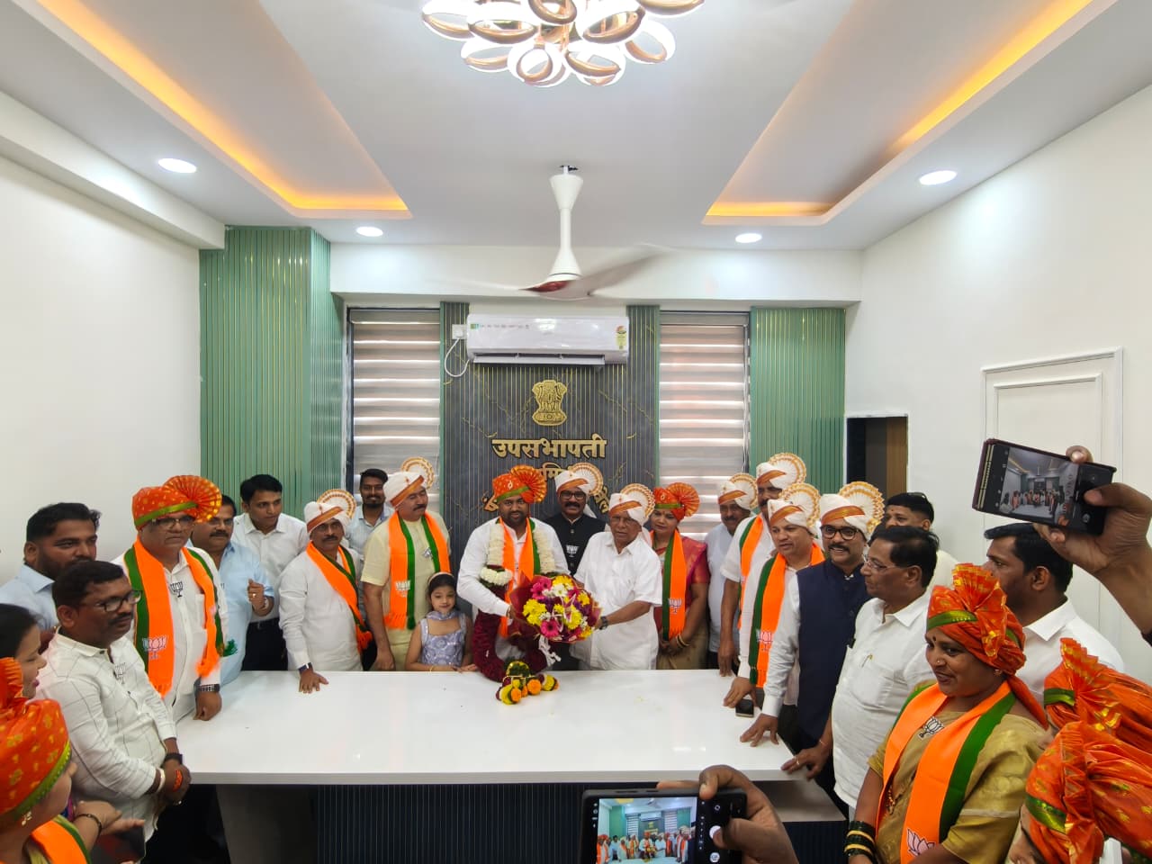 या निवडीनंतर घोषणा, ढोलताशा आणि फटाक्यांच्या जल्लोषात मिरवणूक काढण्यात आली. यावेळी आराध्य दैवत छत्रपती शिवाजी महाराज यांच्या अश्वारूढ पुतळ्यास तसेच भारतरत्न डॉ. बाबासाहेब आंबेडकर यांच्या पुतळ्यास अभिवादन करण्यात आले. विजय अद्भुतपूर्व असला तरी या विजयी जल्लोषात विनम्रपणा स्पष्टपणे जाणवत होता. यावेळी लोकनेते रामशेठ ठाकूर, आमदार प्रशांत ठाकूर, आमदार महेश बालदी, जिल्हाध्यक्ष अविनाश कोळी, ज्येष्ठ नेते वाय. टी. देशमुख, राज्य परिषद सदस्य अरुणशेठ भगत, महापौर नितिन पाटील, माजी सभागृहनेते व विद्यमान नगरसेवक परेश ठाकूर, युवा नेते प्रितम म्हात्रे यांच्यासह इतर नेतेमंडळी, पदाधिकारी, कार्यकर्ते आणि नागरिकांनी सभापती, उपसभापती यांचे अभिनंदन केले. त्यानंतर मार्केट यार्ड येथे त्यांचा जाहीर सत्कार करण्यात आला.